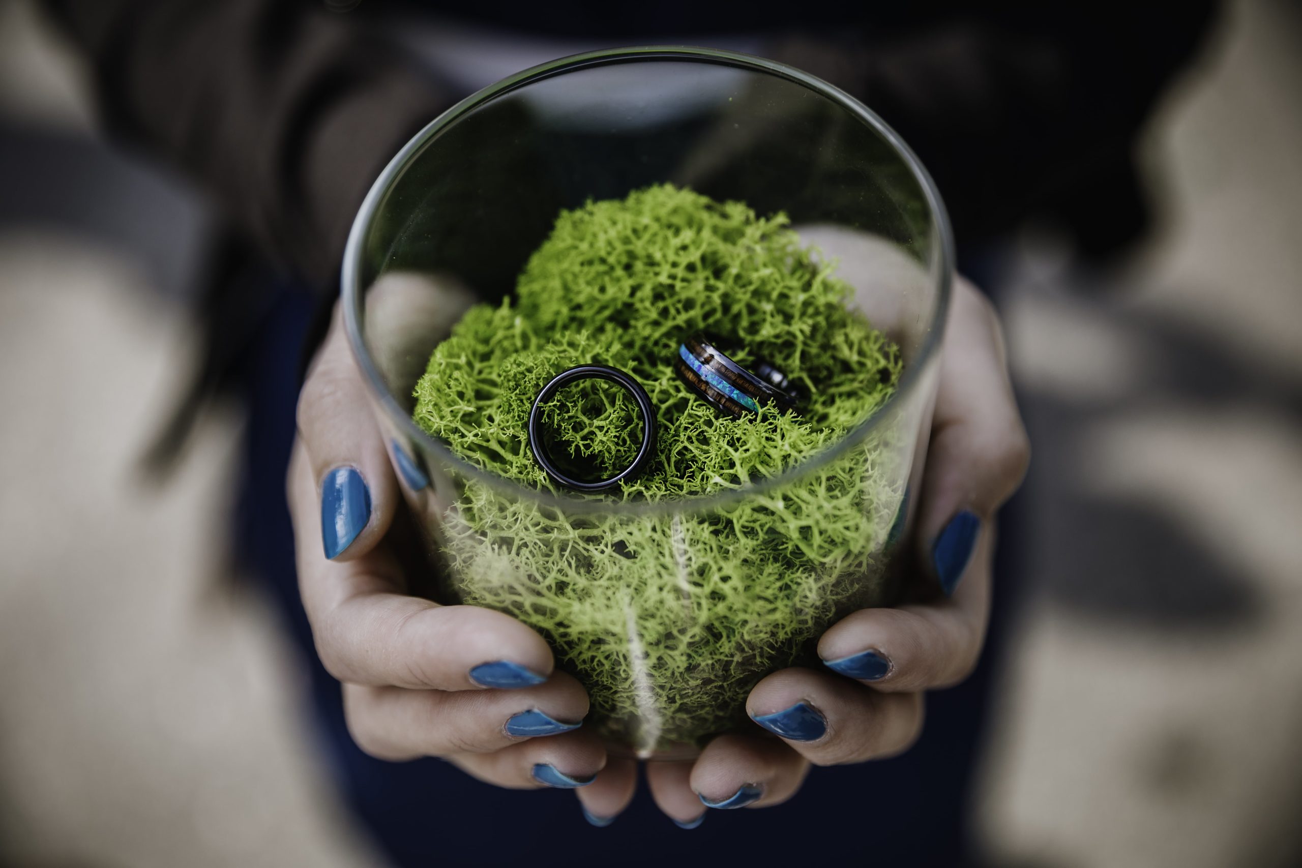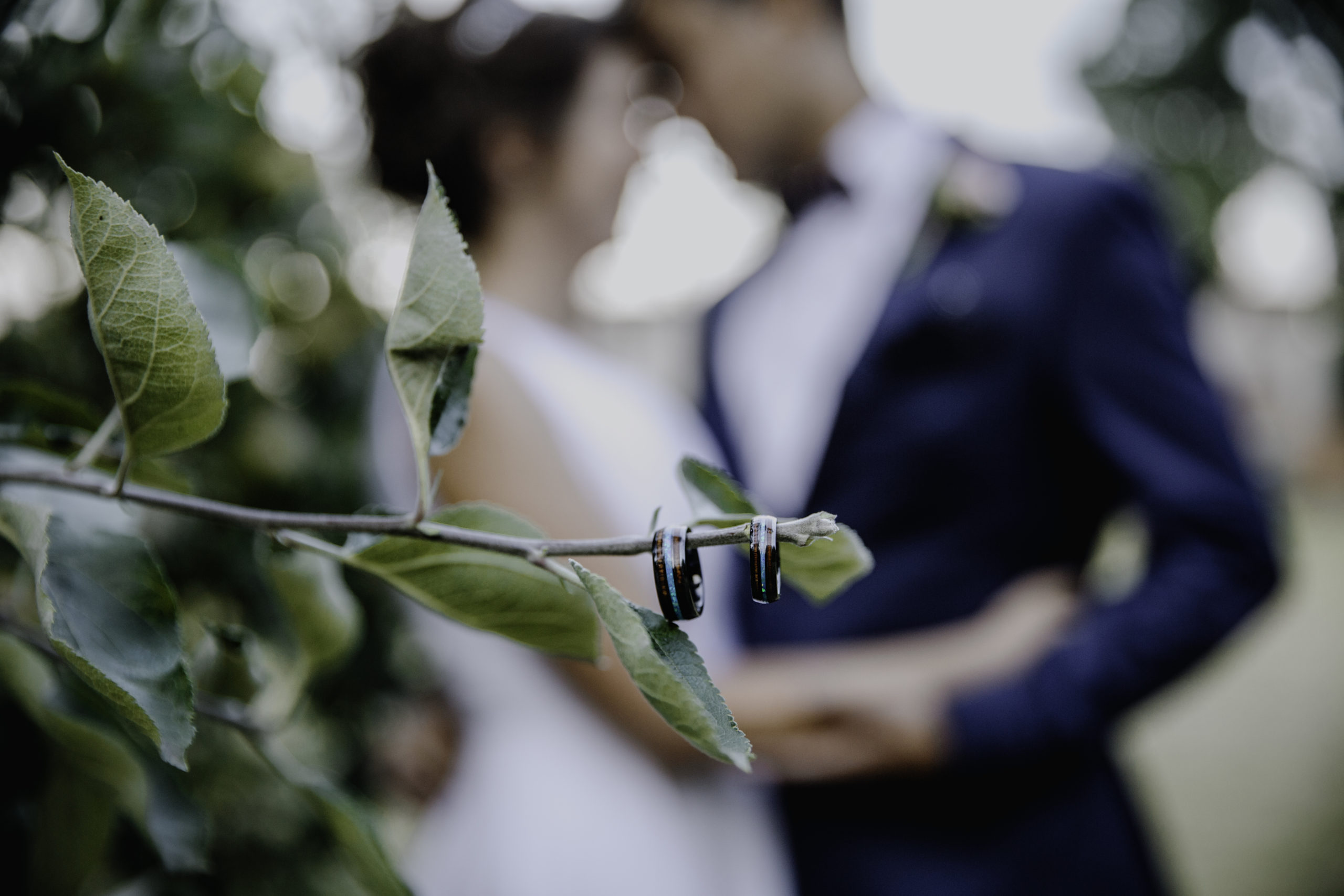 Pierścionki to tradycyjne obrączki z Hawajów (Koa wood i australijski opal) i stamtąd też przyleciały. Niestety nie trafiliśmy z rozmiarem i musieliśmy je odesłać i poczekać na nowe. W tym czasie na Oahu wybuchł wulkan i ewakuowano część wyspy. Wysyłka nowych obrączek się przeciągnęła. Potem zostały zatrzymane na cle w Poznaniu, gdzie spędziliśmy 4h oby je wyciągnąć, bo zaadresowane były na Edgara i tu małe móżdżki tłuściutkich urzędników zaczęły się przepalać.