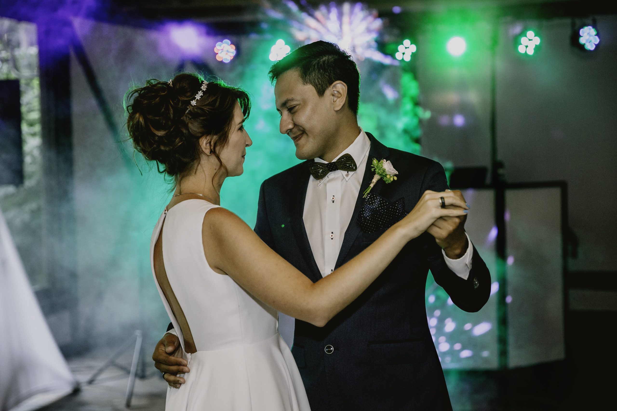 Zgodnie z tradycją było powitanie chlebem i solą, zbijanie kieliszków, które nie do końca nam wyszło z pierwszym razem, 🙂 pierwszy taniec (który zaimprowizowaliśmy, bo nie było czasu na lekcje wymyślnego układu), życzenia i prezenty, krótka sesja fotograficzna, no i zabawa.